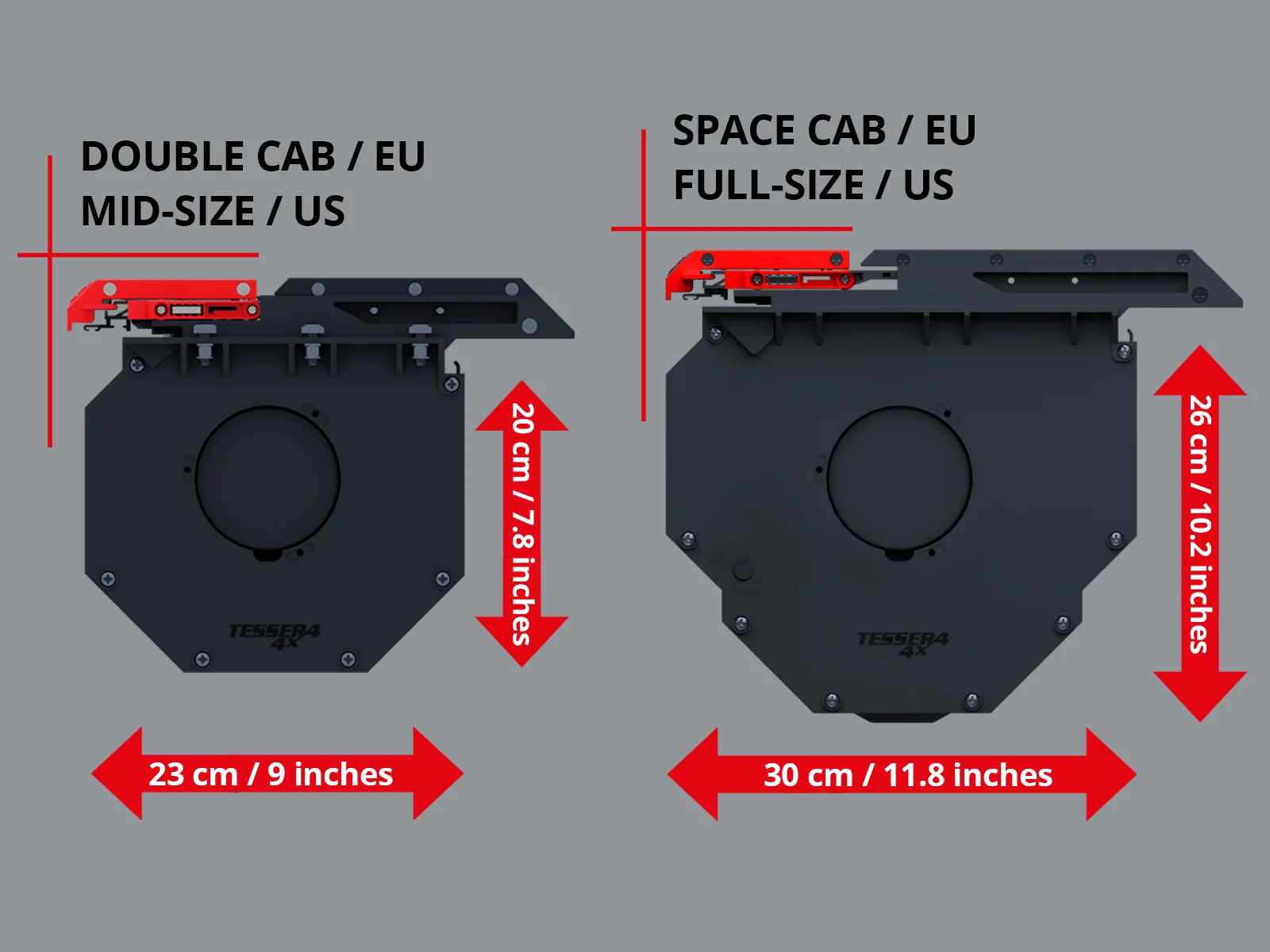 Ο καινοτόμος σχεδιασμός της χειρολαβής σε συνδυασμό με την πολύ μικρή διάσταση του κάνιστρου (4-πορτα 20 cm/7.8 inches x 23 cm/9 inches (ΥxΠ) & μιάμιση καμπίνα / μονοκάμπινα / Αμερικάνικα μοντέλα 26 cm/10.2 inches x 30 cm/11.8 inches (ΥxΠ)), προσφέρει το πλεονέκτημα της απόλυτης εκμετάλλευσης και λειτουργίας του χώρου, τόσο σε μήκος όσο και ύψος.